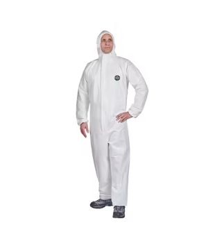 DuPont™ ProShield® 60. Mono con capucha disponible en blanco en los tamaños SM a 7X. Nuevo patrón para un ajuste óptimo. Elásticos en cara, muñecas, cintura y tobillos.