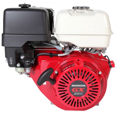 Motor estacionario de 4 tiempos de 13 HP, con sistema OHV (válvulas a la cabeza), descompresor que facilita su arranque, eje horizontal con arranque manual y alerta de aceite que hace detener el equipo en caso de bajo nivel de aceite.