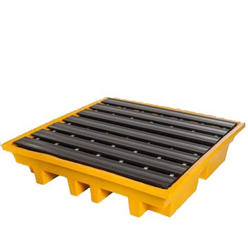 Esta batea antiderrame está diseñada para cumplir con las normas para el almacenamiento de 4 tambores de 200 lts, o 32 bidones de 20 Lts.
